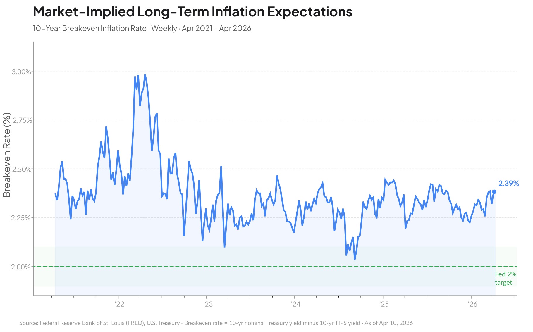 A deeper look into market indicators supports this view. Long-term inflation expectations are currently at 2.39%, having barely budged since the beginning of the year.
