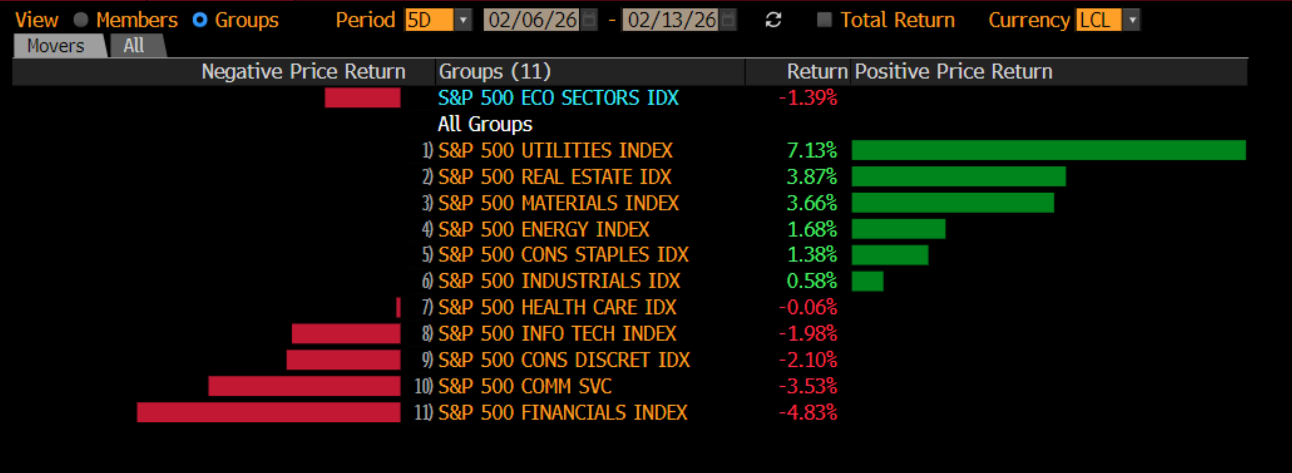 Last week, AI disruption was a tech story. We wrote about software stocks repricing rapidly as investors digested the implications of a new wave of AI tools that could replace tasks once handled by expensive enterprise platforms. The selloff was sharp, but contained.